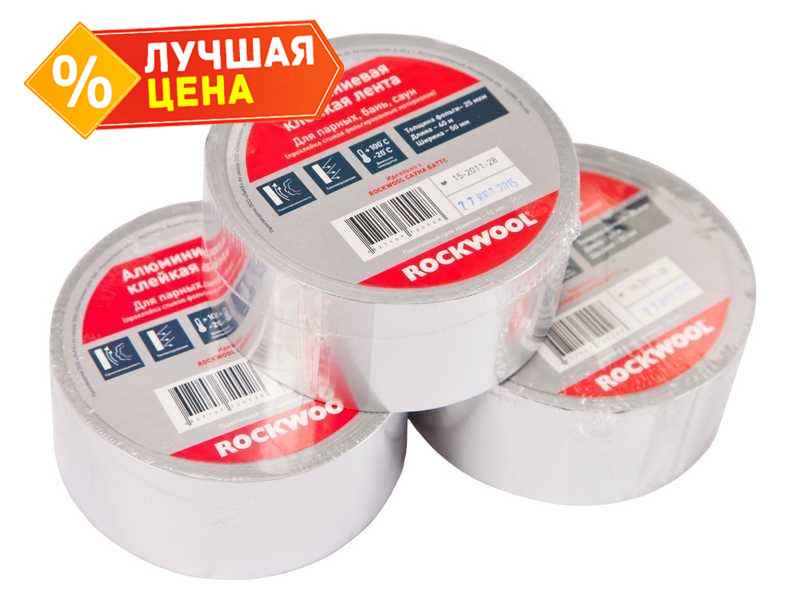 Алюминиевая клейкая лента ROCKWOOL предназначена для проклейки швов (стыков) между плитами САУНА БАТТС..
